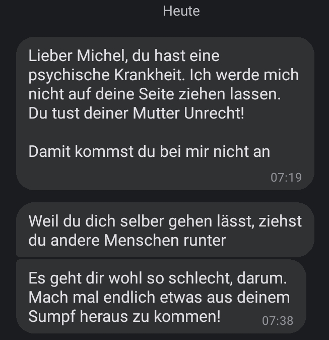 Das letzte Mal physisch habe ich meine Mutter vor {year} Jahr und {day} Tagen getroffen.