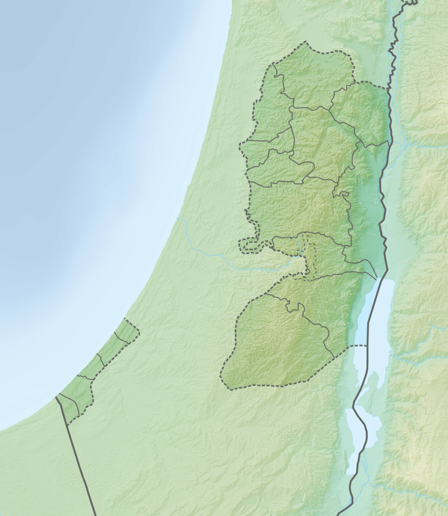Quelle: https://de.m.wikipedia.org/wiki/Datei:Reliefkarte_Pal%C3%A4stina.png , abgerufen am 04.09.2025 um ca. 11.25 Uhr. Der Urheber dieses Bildes nennt sich ‚Tschubby‘. Das Bild wurde von Nutzer ‚Toghrul R‘ am 06.07.2019 leicht verändert («aspect radio fix to match svg version»). Gemäss https://de.m.wikipedia.org/wiki/Datei:Reliefkarte_Pal%C3%A4stina.png , abgerufen am 04.09.2025 um ca. 11.25 Uhr, ist es erlaubt das Werk zu verbreiten und öffentlich zugänglich zu machen.