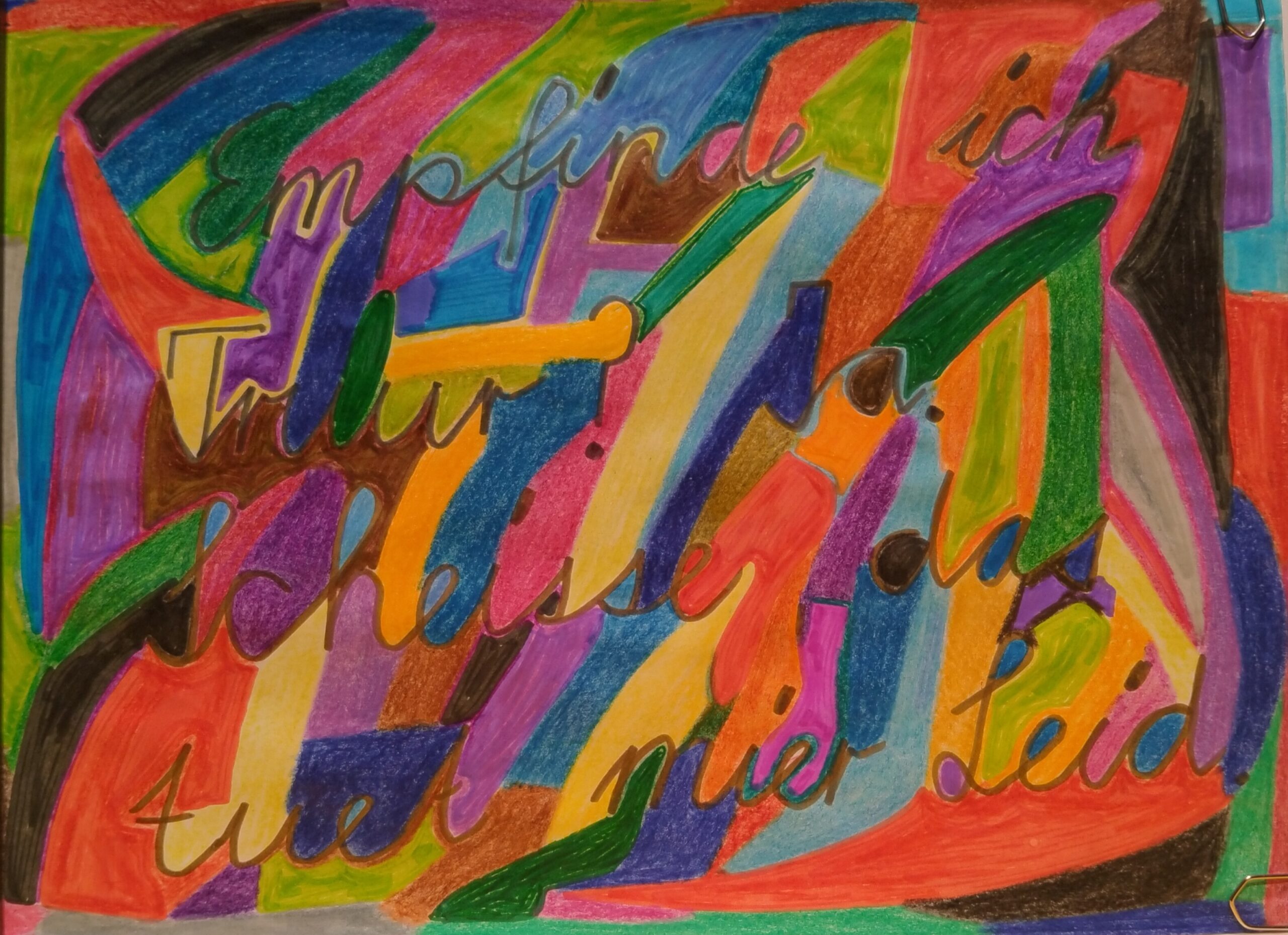 Ich gehe zu Bett. Plötzlich höre ich die Ambulanz. Ich weiss, dass sie wahrscheinlich wegen uns kommt. Wahrscheinlich hat meine Mutter wieder einmal zu viele Tabletten genommen. Ich könnte jetzt aufstehen und mich der Situation stellen. Doch ich muss morgen früh auf - {Han ich Angst? Ja.} - ich muss zur Schule. Also schlafe ich weiter. Am nächsten Tag gehe ich zur Schule. Meine Mutter ist weg. Werde ich sie je wieder sehen? Ich bin elf Jahre alt.